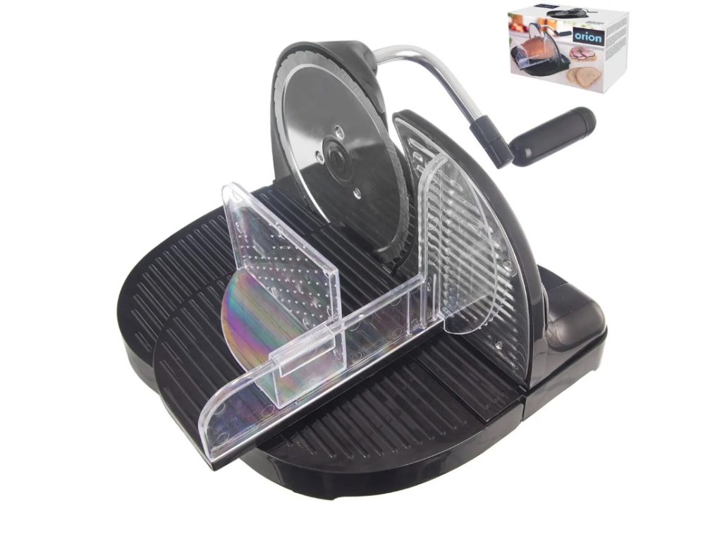 - Materiál: plast ABS, nerezová ocel 304 (krájecí kotouč), nerezová ocel 430, PS (transparentní části), guma (přísavka), PVC (podložka), kov.
