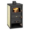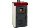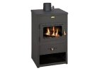 Krbová kamna PRITY W 17 s teplovodním výměníkem a plotnou v provedení černý plech na boku smaltovaný plech.