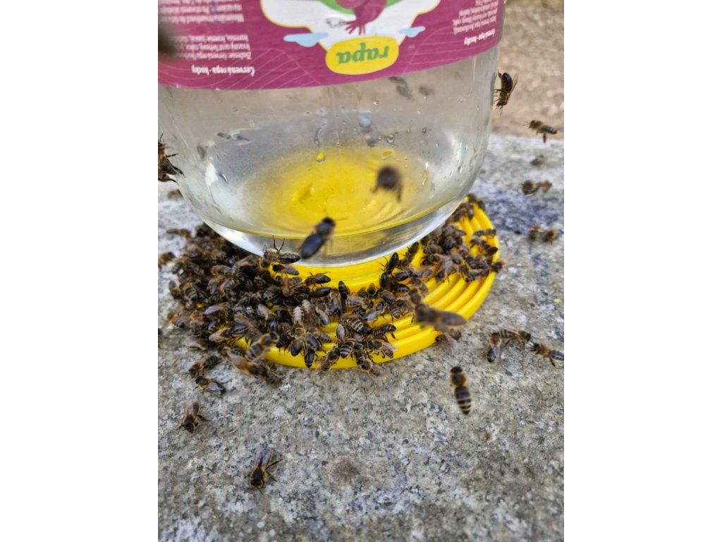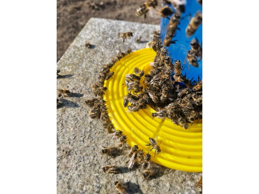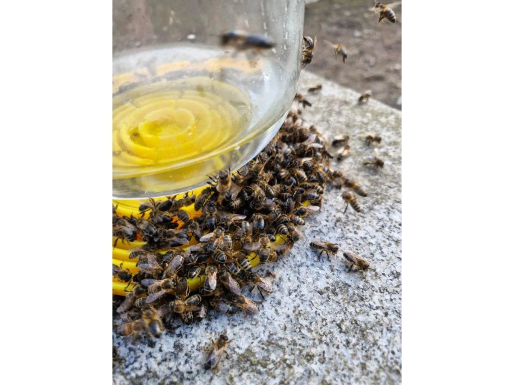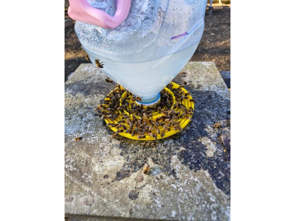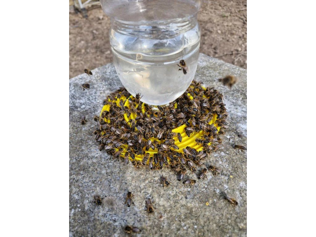 Napáječka pro včelky, kterou lze osadit PET lahví od objemu 0,2 L, dále PET kanistrem a nebo sklenicí o objemu 4L. Při osazení PET lahvemy a kanistry je spojení zajištěno vylisovaným závitem. Záleží jen na Vás, co zvolíte. Napáječka má lamely, po kterých moho včelky bzpečně chodit a neutopí se. Knstrukce je velmi stabilní, takže nehrozí převržení napáječky.