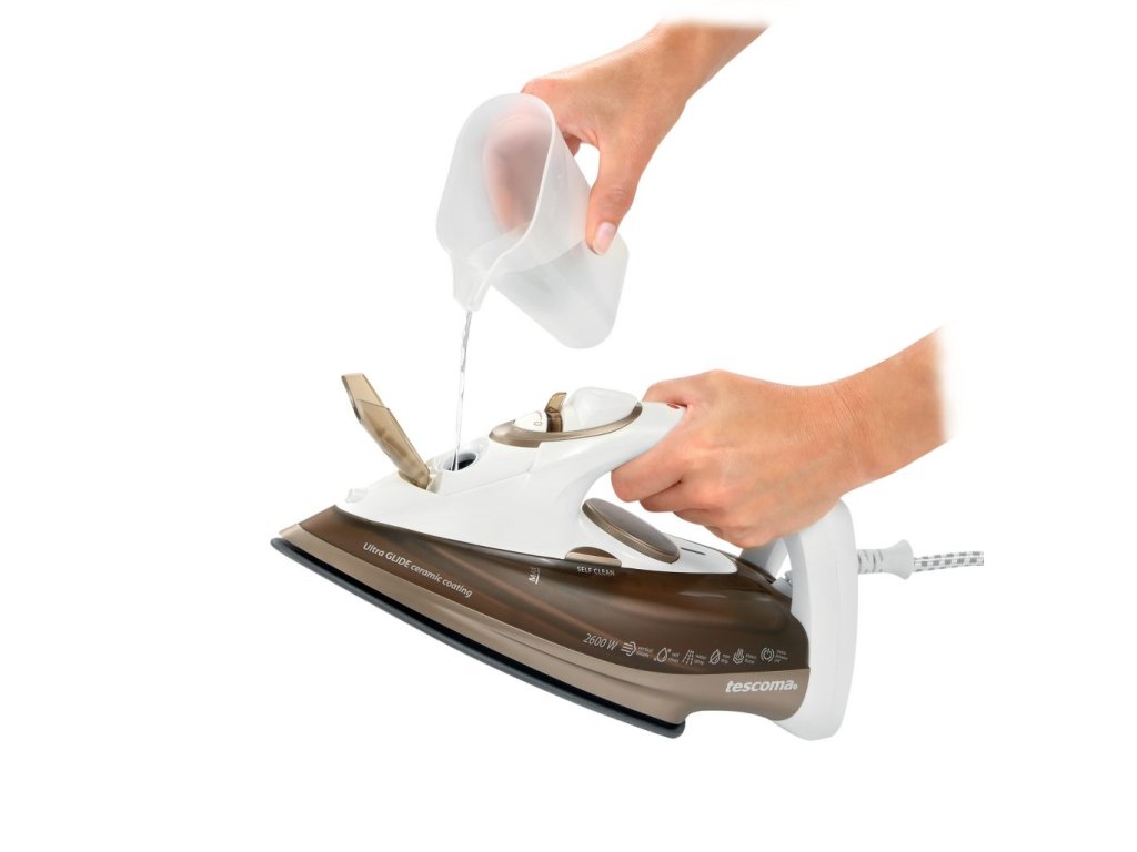 Pro žehlení silně pomačkaných textilií má žehlička praktickou funkci kropení „water spray“. Také údržba a čištění žehličky jsou velmi pohodlné, je totiž opatřena funkcí samočištění „self clean“.