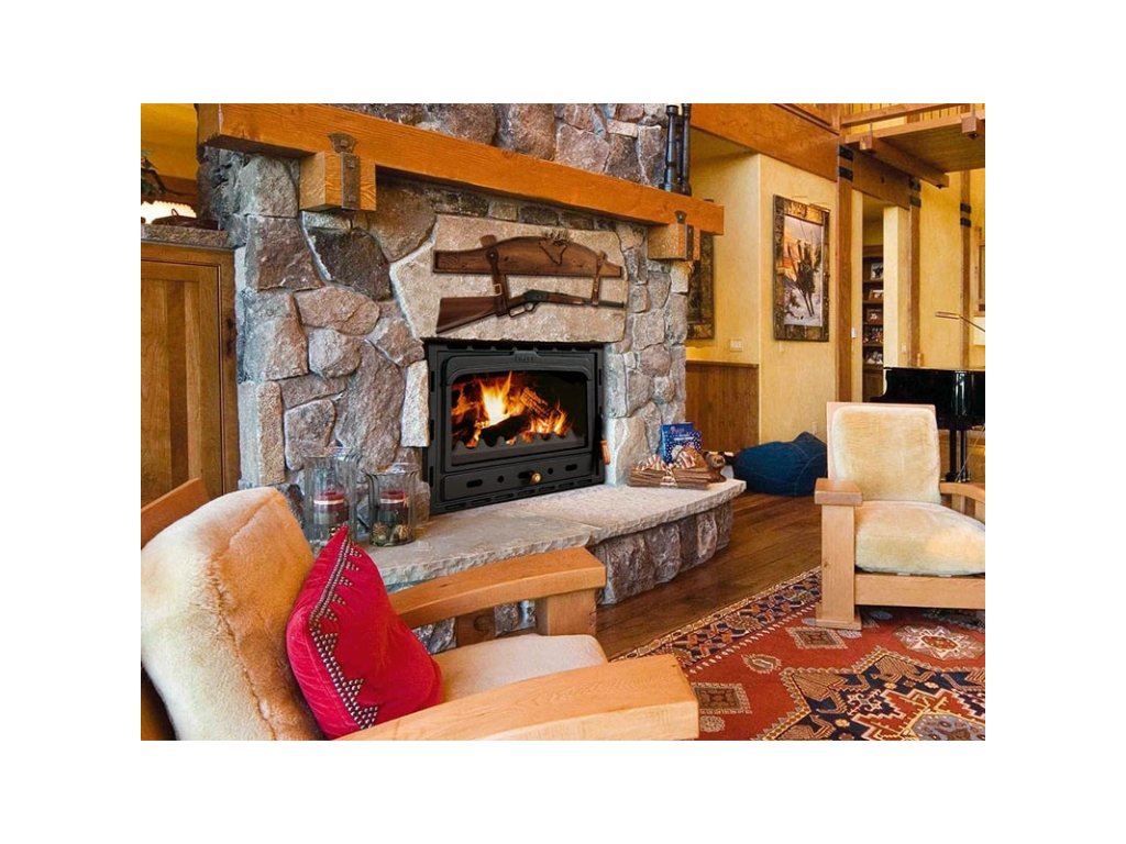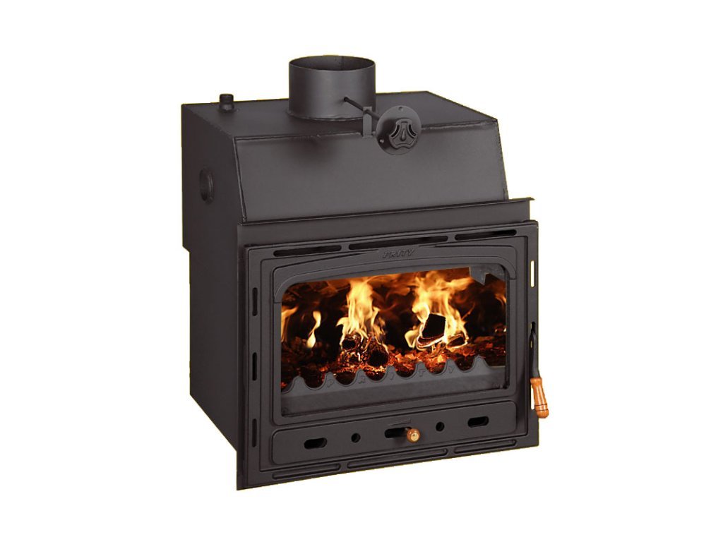 Výkonná krbová vložka s teplovodním výměníkem a litinovými dvířky. Výměník je situován do 3 svislých stran kolem topeniště a vodorovně v příčce před odtahem spalin na výstupu z vložky. Součástí je litinový rošt. Přívod primárního vzduchu je regulovatelný přes popelník, sekundární vzduch oplachuje sklo a nelze jej regulovat. Materiál: 3+4+5 mm plech, samovypalovací černá barva