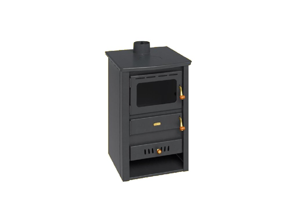 Praktická a výkonná krbová kamna s teplovodním výměníkem a litinovou horní deskou. Dvojí dvířka do prostoru pro spalování. Spodní - menší, slouží k zapálení, vrchní - prosklené, slouží k přikládání. Vzniká tím hluboké topeniště, u kterého se snižuje riziko vypadení žhavého dřeva při přikládání. Výměník je situován do 3 svislých stran kolem topeniště a vodorovně v příčce před odtahem spalin na výstupu z kamen. Součástí je litinový rošt. Na horní desce je umístěn čistící otvor. Přívod primárního vzduchu je regulovatelný přes popelník, sekundární vzduch oplachuje sklo a nelze jej regulovat. Materiál: 3+4 mm plech, samovypalovací černá barva